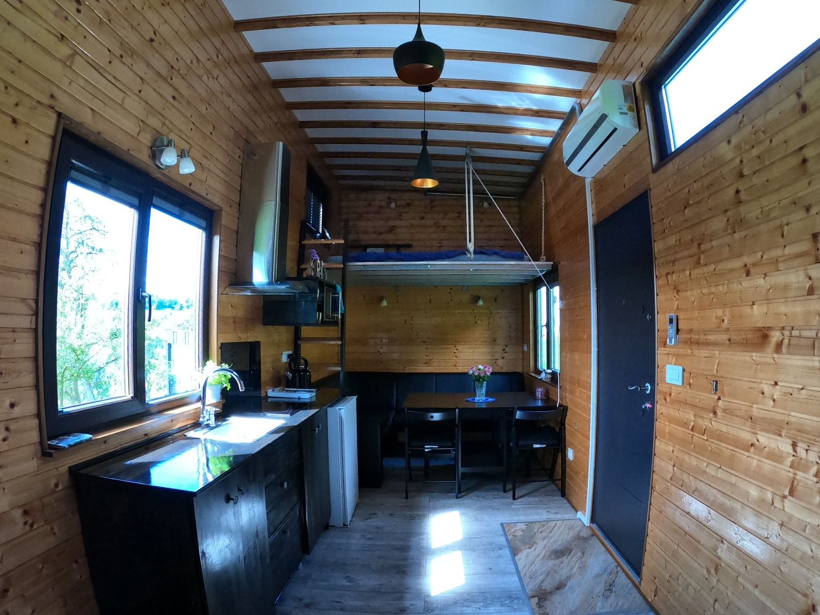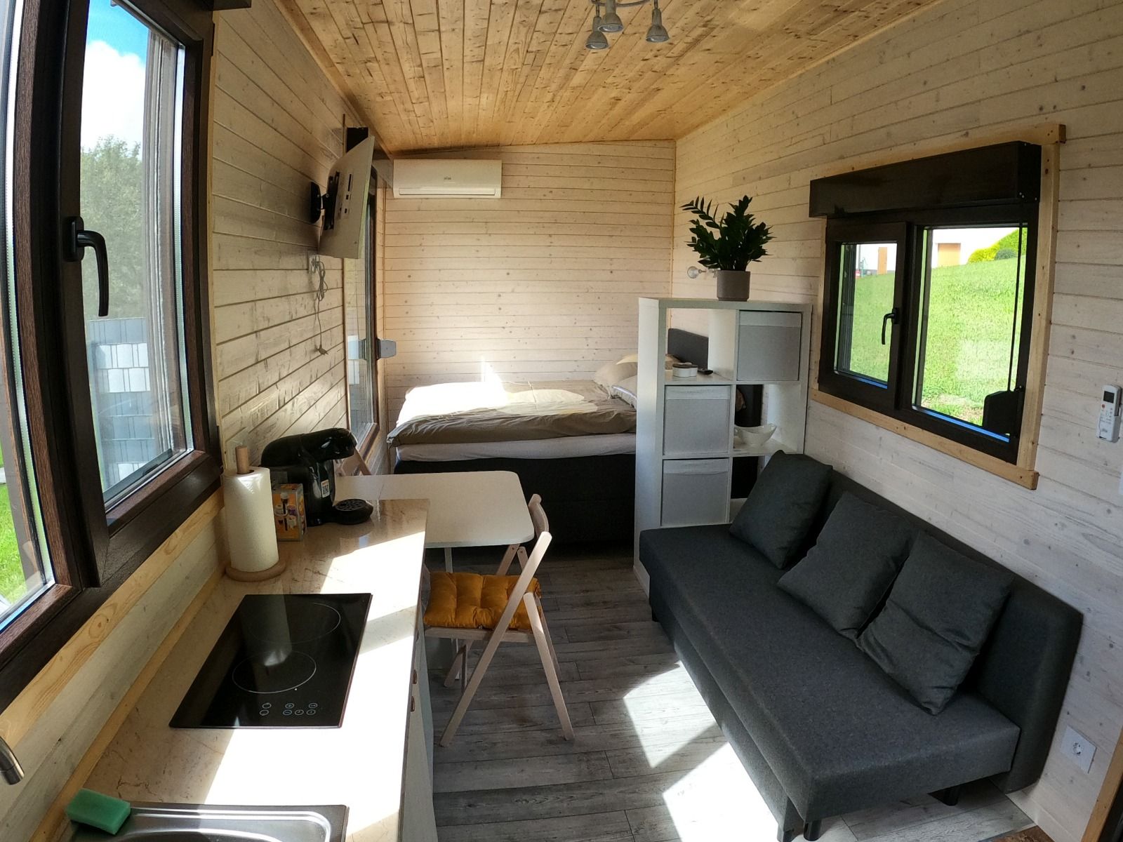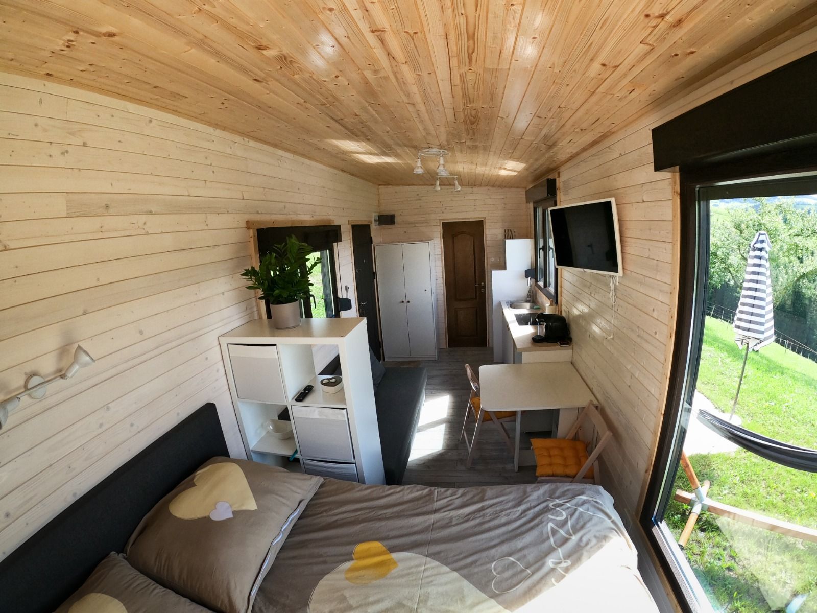 Každý Tiny House je vybavený kuchyňou, kávovarom, mikrovlnnou rúrou, posteľou na spanie, priestorom na sedenie a šatníkom. V kúpeľni je sprchovací kút s WC, umývadlo s uterákmi a sušič vlasov.