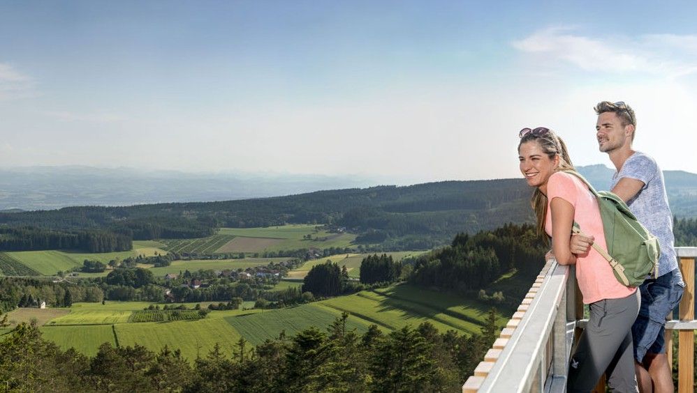 Počas jasných dní sa hosťom naskytne všestranný výhľad z rôznych vyhliadkových plošín, ktorý siaha až po veterné turbíny Grafenschlager a ponúka predalpskú panorámu v dĺžke približne 250 kilometrov od Rax-Schneebergu až po Haller Mauern.