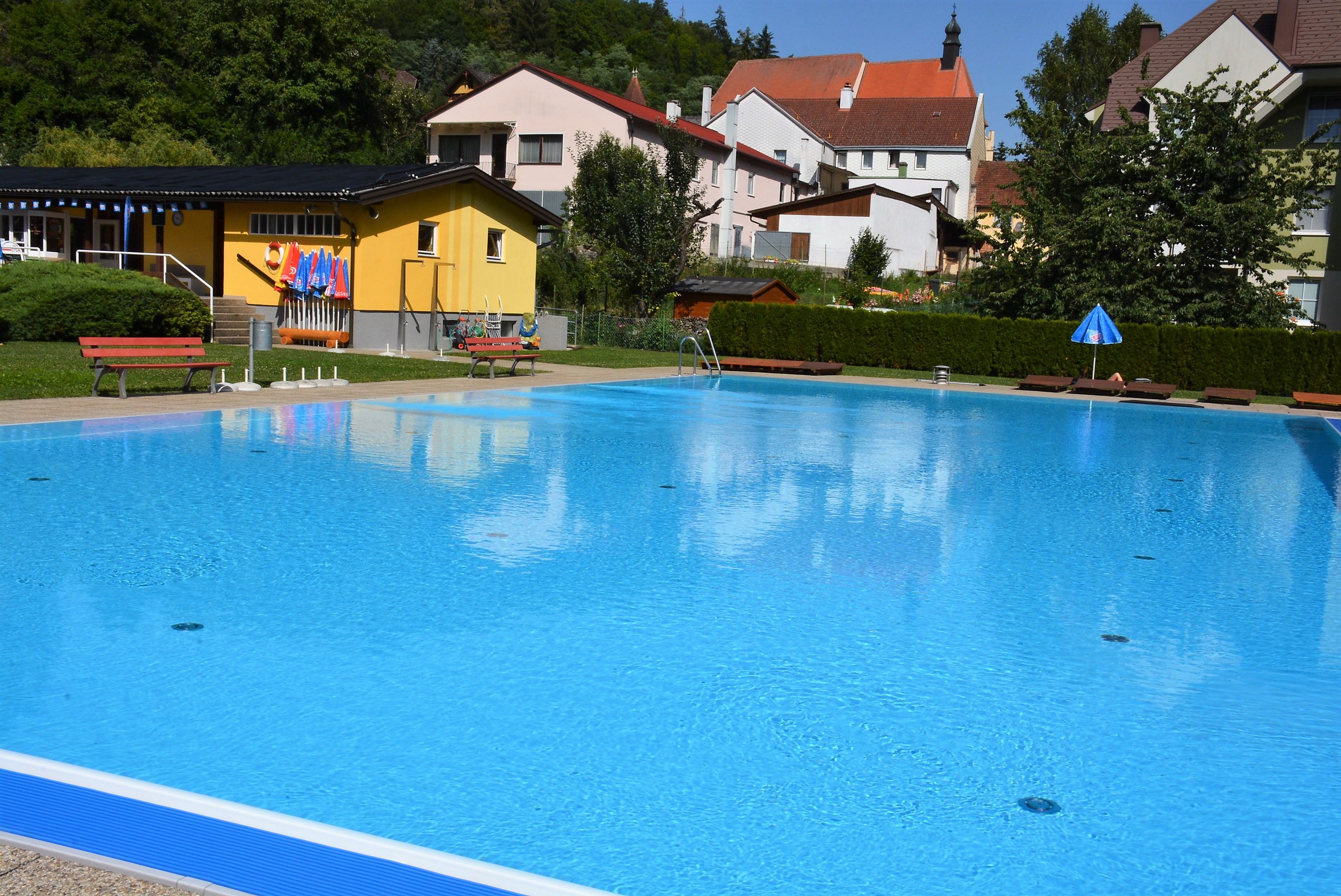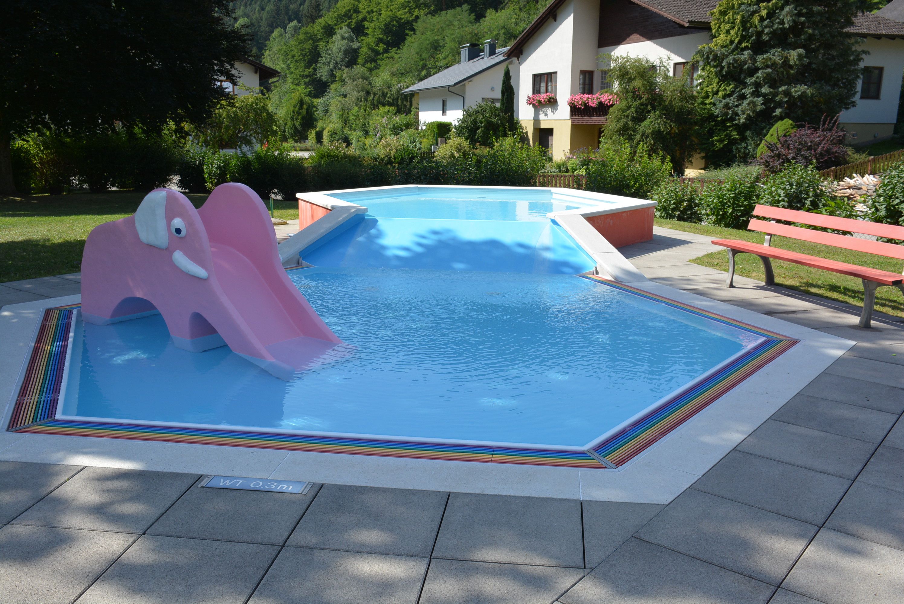 Po pešej túre sa môžete vybrať k solárne vyhrievanému vonkajšiemu bazénu s priestranným trávnikom na opaľovanie. Tam na vás čakajú masážne trysky a sprcha. Pre našich najmenších hostí je k dispozícii detské brodítko so spojovacou šmýkačkou a šmýkacím slonom. Gastronómia sa podáva v bufete pri bazéne.