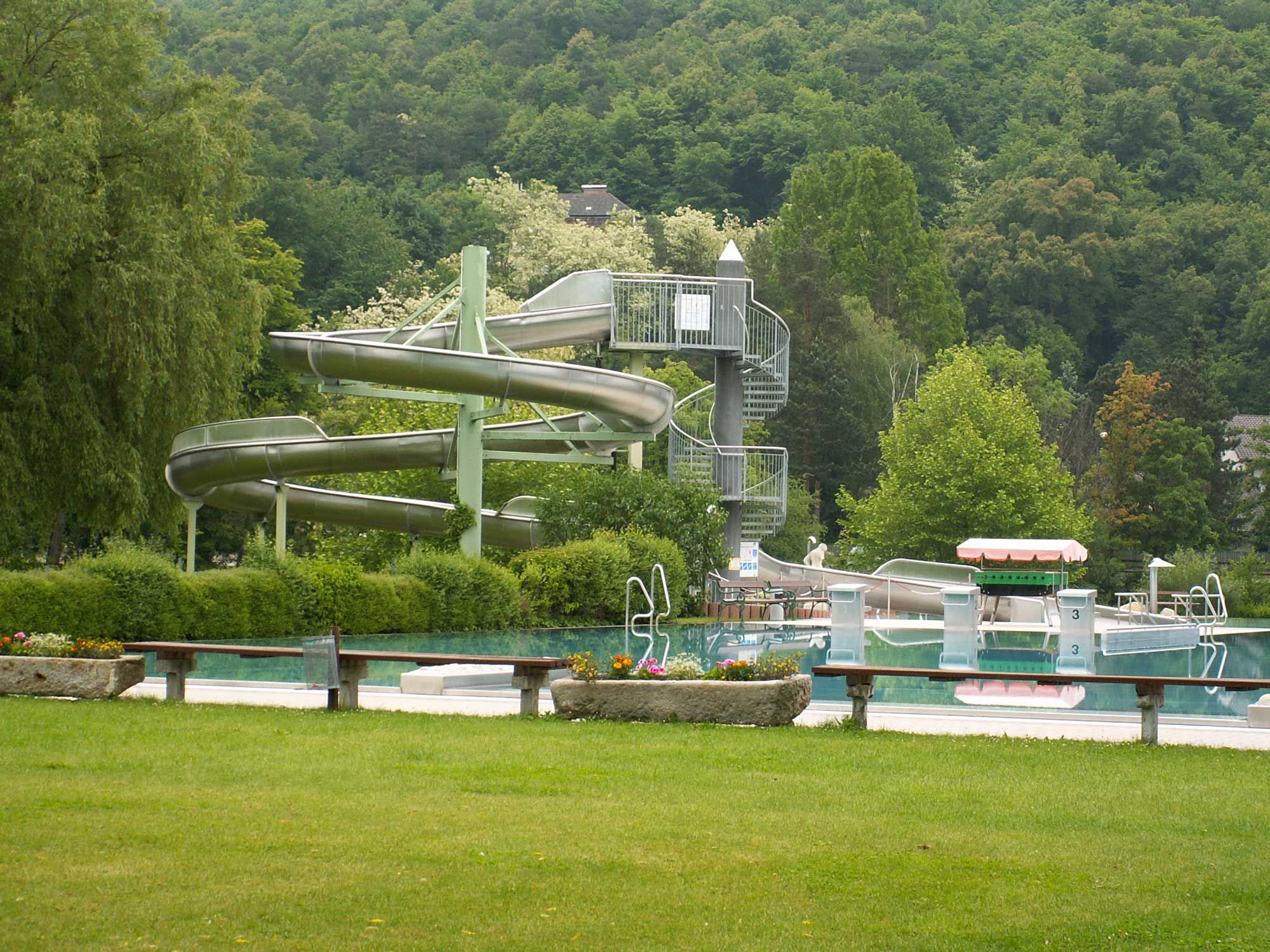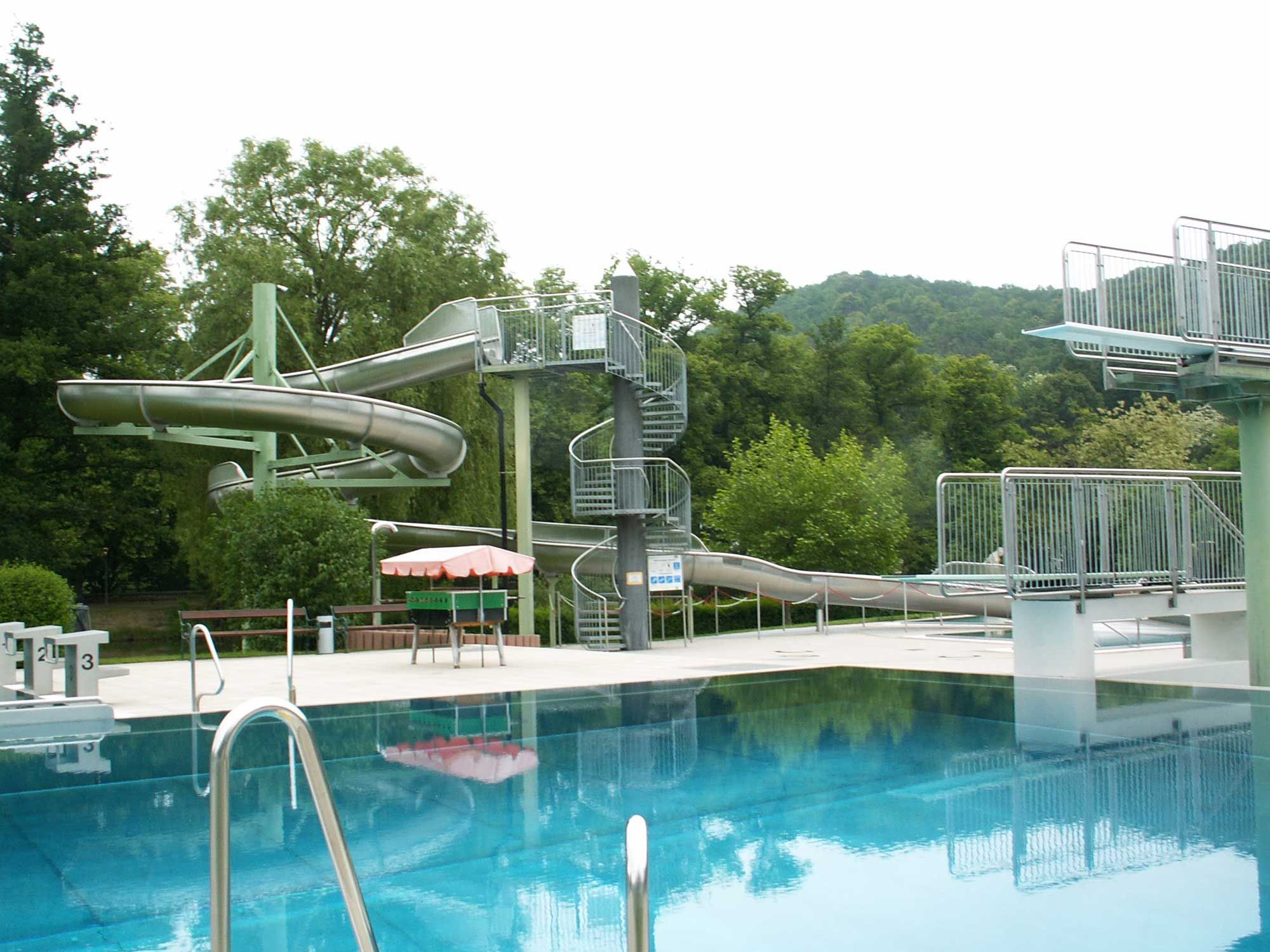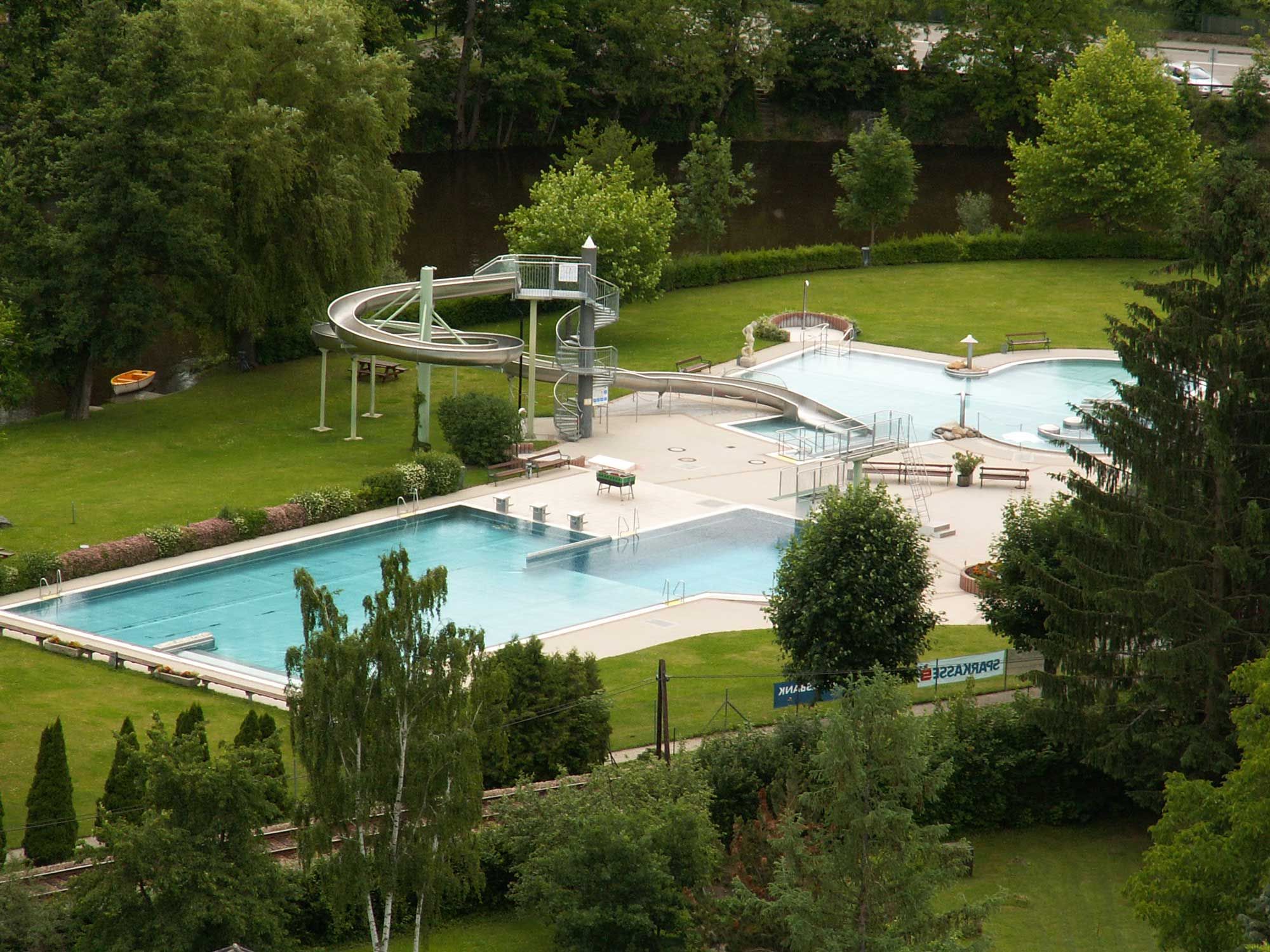 Zážitkový bazén Garser s 1 športovým bazénom, 1 zážitkovým bazénom a 1 detským bazénom: športový bazén s priestorom pre skokanov, "vodným vírivým ležadlom" a zážitkovým bazénom so vzduchovými bublinami, prúdovým kanálom, masážnymi tryskami, vodnými chrličmi a 58 m dlhým toboganom.