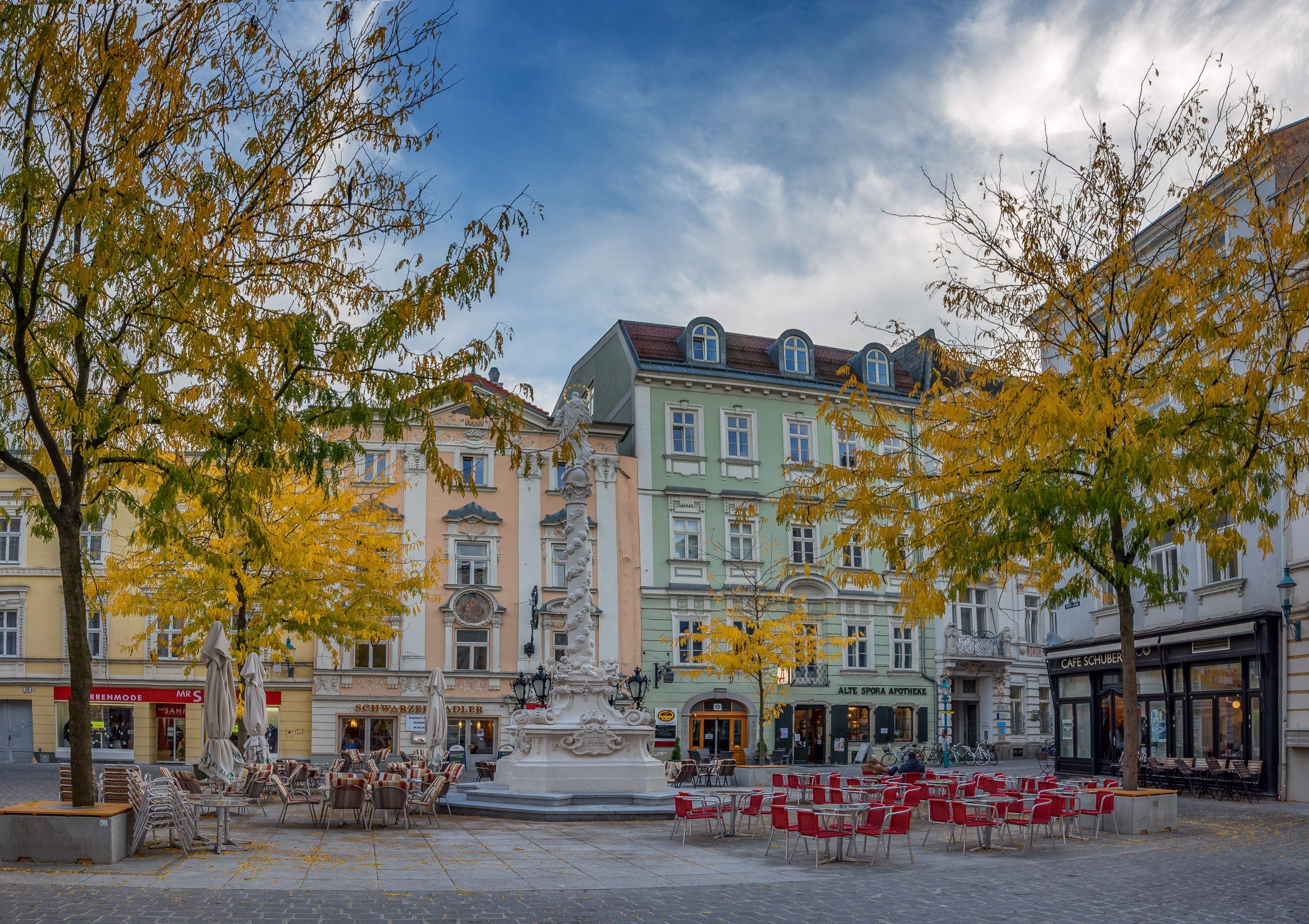 Príkladom neskorej secesnej fázy je budova na Herrenplatz 4, ktorú v rokoch 1913/14 postavil Hubert Gessner, žiak Otta Wagnera. Budova sa vyznačuje jasnými, stereometrickými formami a ozvenami klasicizmu. Dekoratívne prvky z dielne Werkbundu a figurálna výzdoba secesného umelca Antona Hanaka charakterizujú vzhľad tejto budovy, ktorá je dominantou v panoráme mesta.