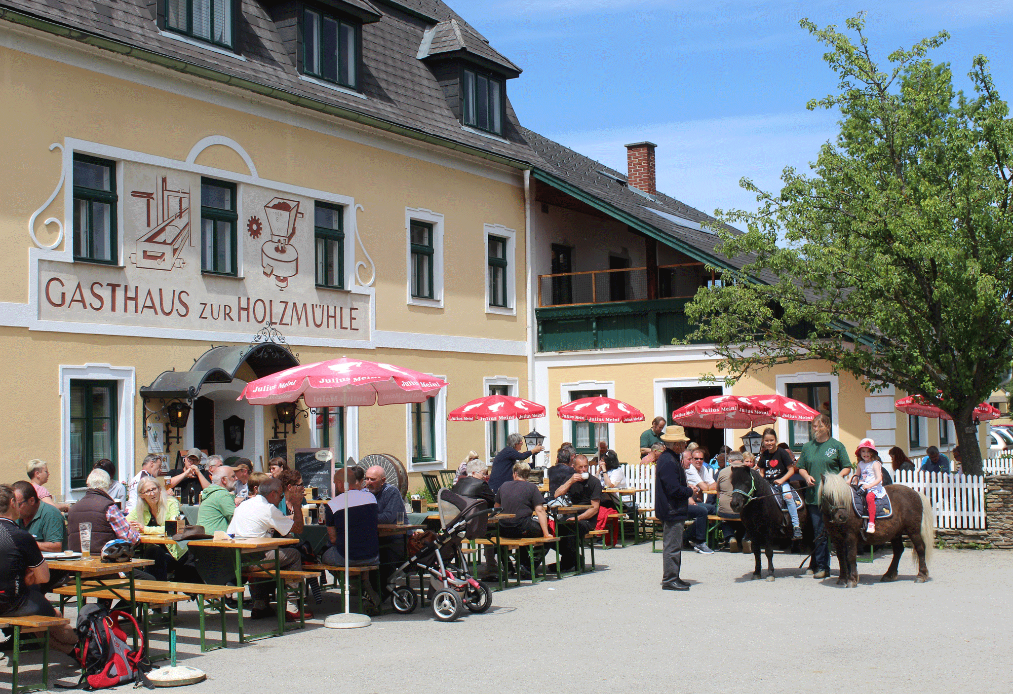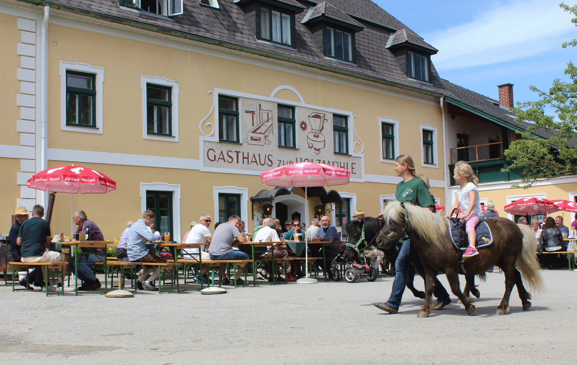 Na poníkovej farme Holzmühle nájdete zábavu spojenú s koňmi v malebnej lokalite: jazdy na poníkoch, výučba pre začiatočníkov, jazda na bežkách a trailoch, jazda na koči, chov poníkov, farma pre najmenších, výlety na oslíkovi a mnoho ďalšieho. Program nájdete na: www.ponyhof-holzmuehle.at alebo zavolajte na (T) +43 664 5077371.
