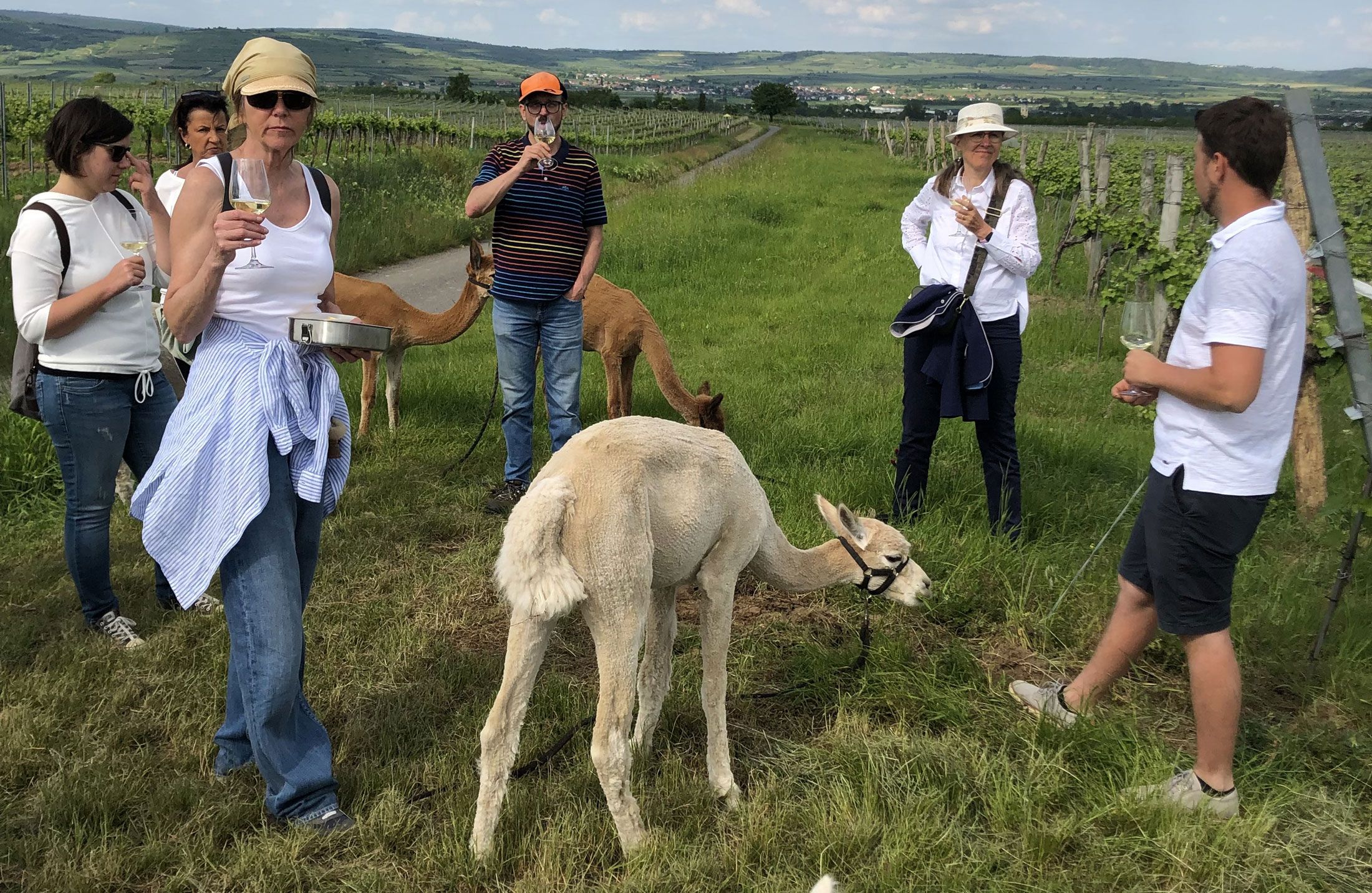 Naši hostia môžu teraz exkluzívne spojiť túru s alpakami s ochutnávkou vína. Vo vybraných vinohradoch na našej turistickej trase ochutnáme tam vyrobené víno.