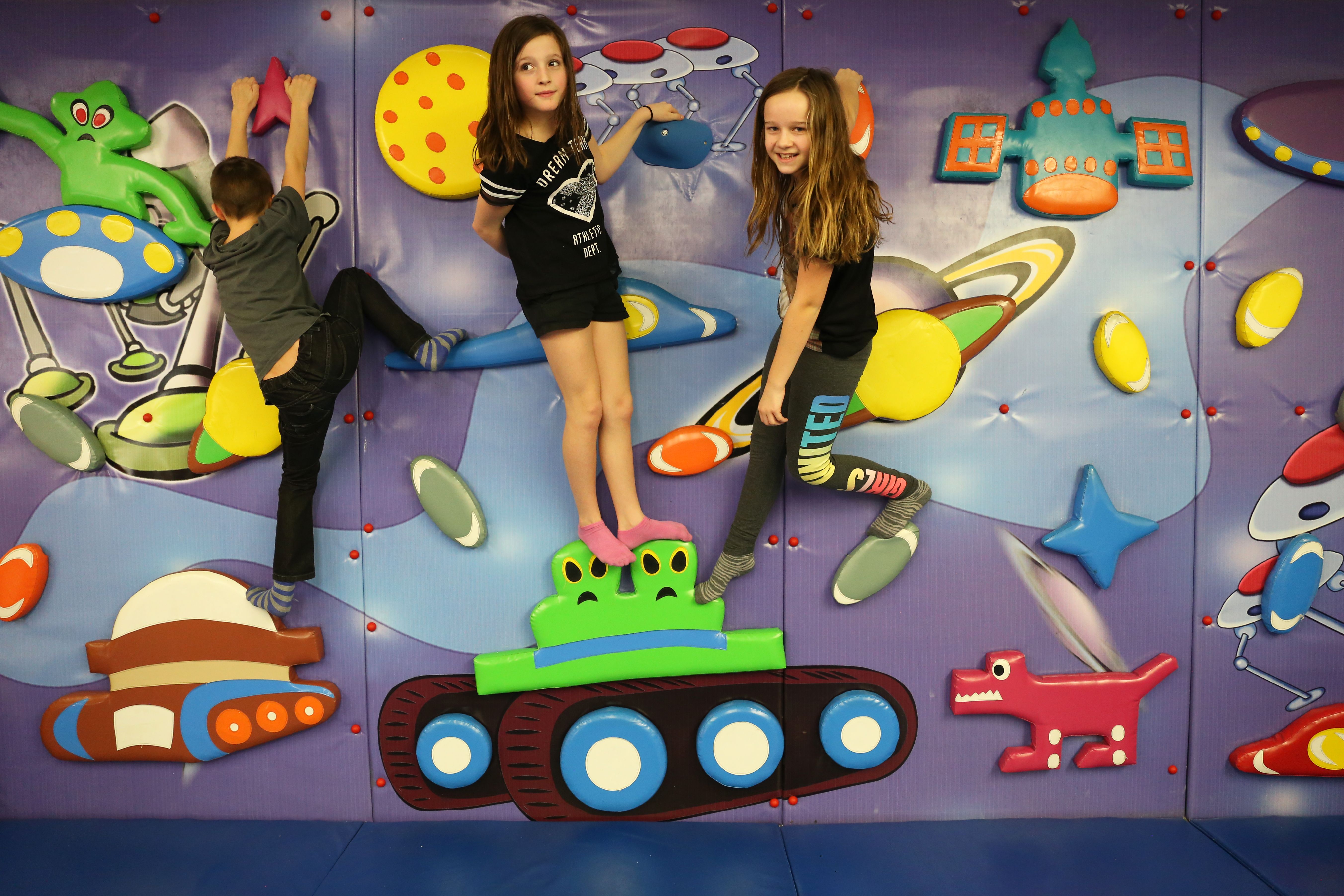 Detský priestor sa rozprestiera na troch poschodiach. Ústredným prvkom vnútorného ihriska je lezecká veža, ktorá sa začína na prízemí a tiahne sa cez všetky tri poschodia. Okolo lezeckej veže sú rozmiestnené početné hracie stanice: Na veži sa nachádza skákací hrad, mäkká balvanová stena, priestor pre batoľatá, ako aj strelecká aréna a jedinečný tábor s drahokamami. Na prízemí sa nachádza aj reštaurácia vhodná pre rodičov a deti.