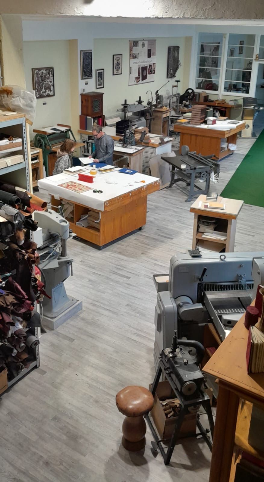 Od roku 2019 sa dielňa nachádza v Böhlerwerku, kde sa väčšina prác vyrába ručne. V dielni sa preto nachádza len niekoľko strojov, z ktorých niektoré sú veľmi staré, iné sú ultramoderné a spĺňajú špeciálne požiadavky. Patrí k nim kĺbový lis, rôzne knižné lisy, ručné pozlacovače a filetovače, ktoré patria k cenným pomocníkom. Kovové a drevené intarzie, ako aj rôzne techniky razenia a lisovania sa používajú takmer denne.