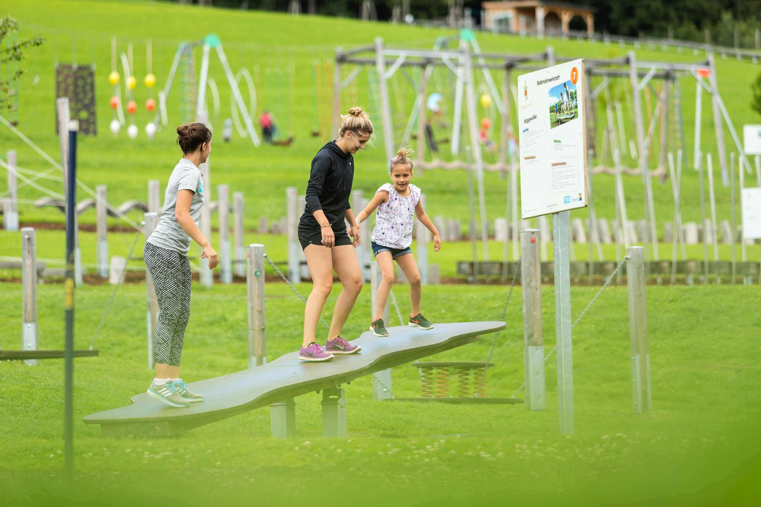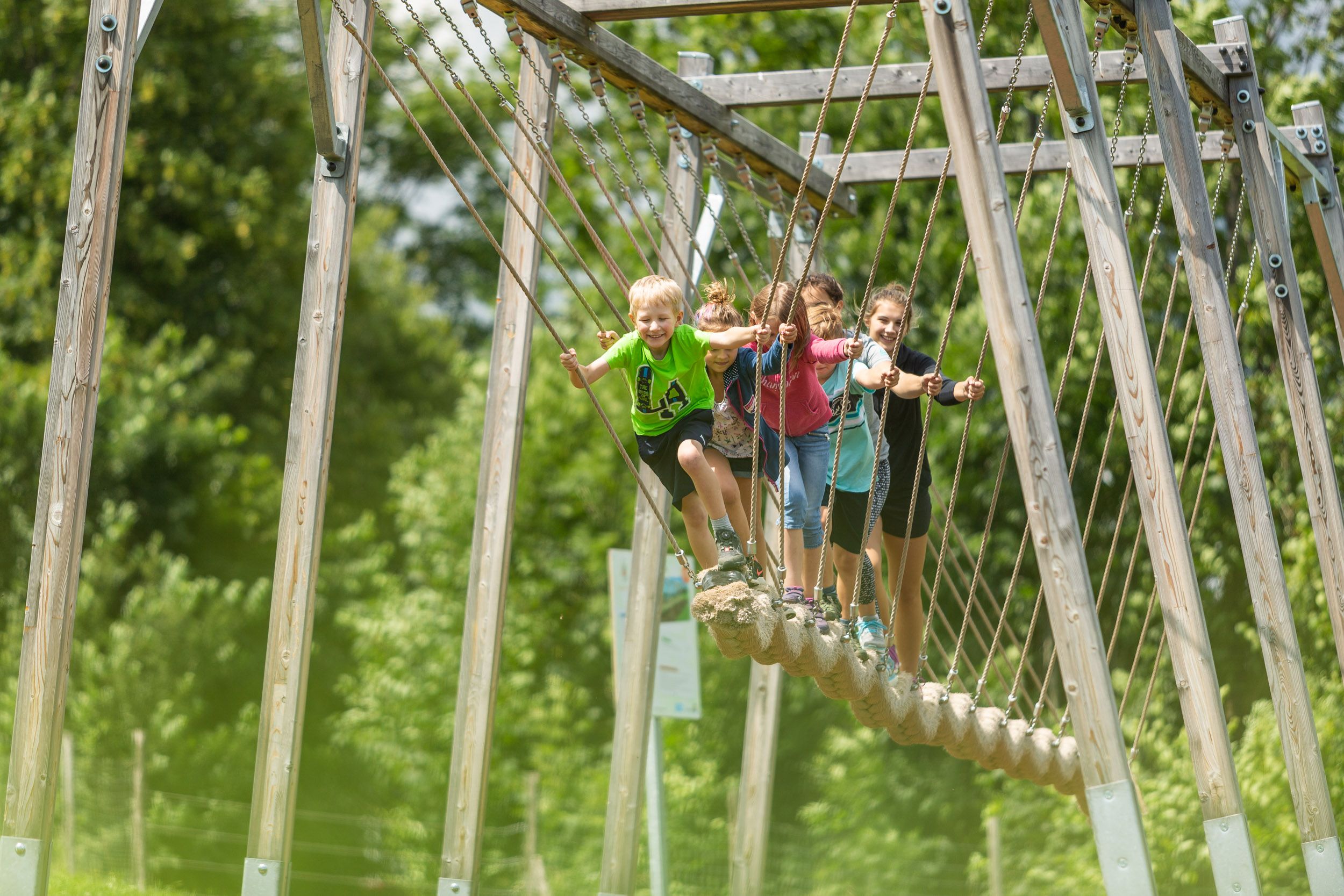 Aj tie najväčšie športové talenty tu pre seba nájdu dostatok výziev. Ak zvládnete prejsť po balančných schodoch bez toho, aby ste z nich museli zísť dole, odmenou pre vás bude zmrzlina v útulnej prevádzke Wechsel Lounge hneď vedľa parku motorických zručností.