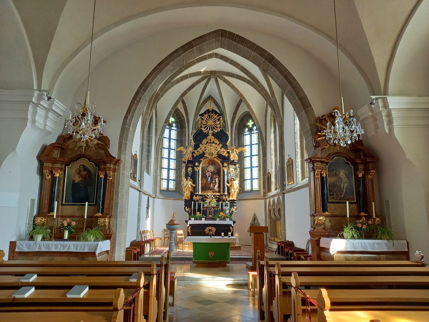 Za pozornosť stojí najmä gotická kazateľnica, nástenná freska zo 17. storočia a gotické presbytérium s gotickým "zasadacím výklenkom". V blízkosti opevneného kostola sa počas vykopávok v roku 1973 našiel starobylý keltský kameň.