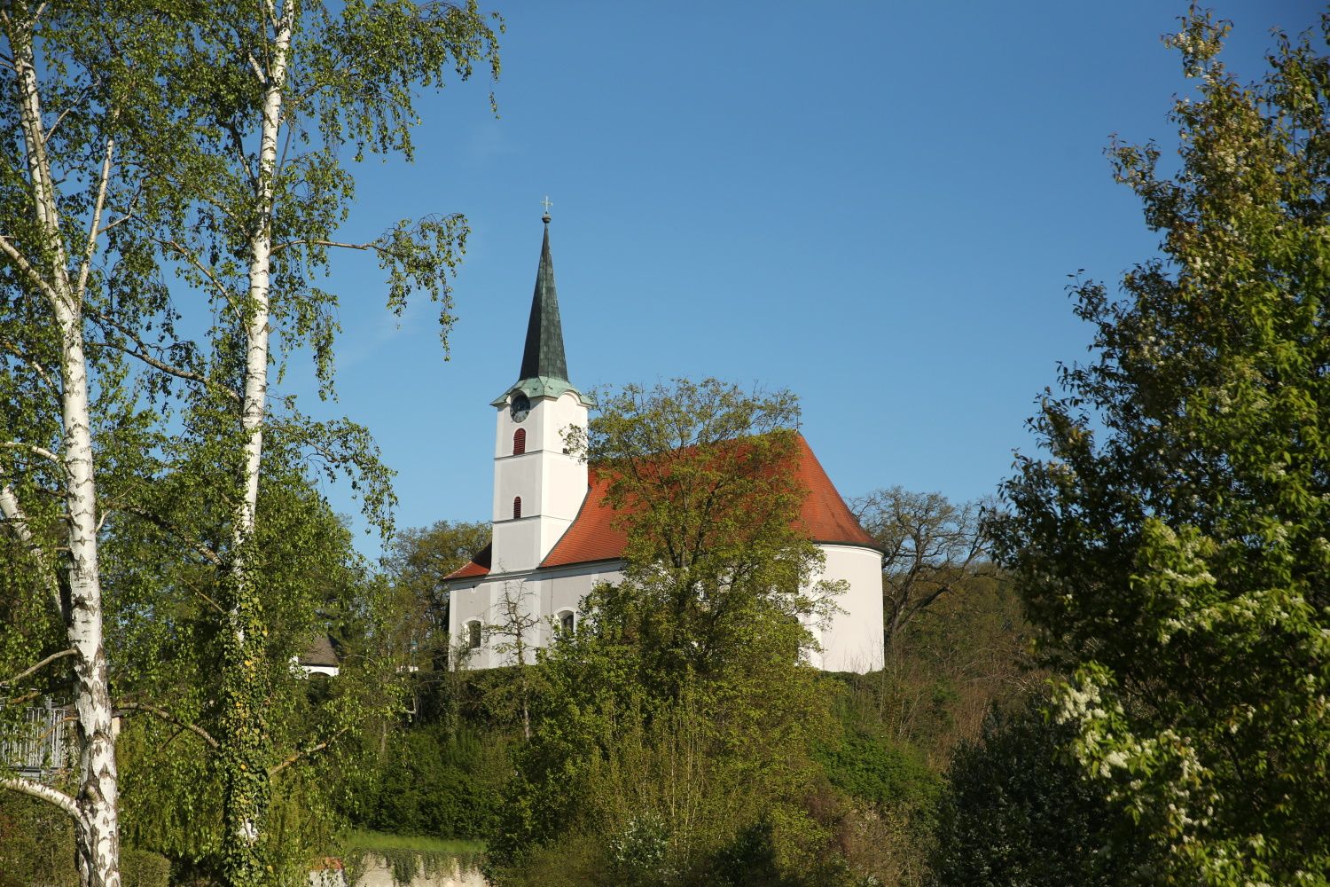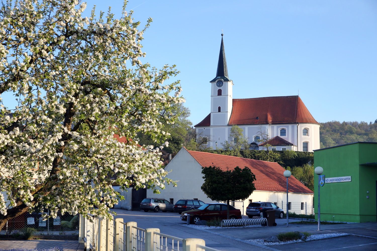 Kostol sa prvýkrát spomína v listine z roku 1147 a je rozpoznateľný ako opevnený kostol. Časti veže pochádzajú z bývalého hradného komplexu, a preto sú staršie ako prvá písomná zmienka. V roku 1367 bolo patronátne právo udelené Thiersteinovcom a loď bola postavená ako protestantský kostol za Geyerovcov okolo roku 1580 - zvláštna diamantová klenba je dobrým príkladom slohovej neistoty v sakrálnych stavbách v tomto období. Z protestantského obdobia pochádza aj pozoruhodný epitaf Bernharda Haydna zum Dorf auf Hainperg z roku 1589 a sprievodný terakotový pohrebný štít - jeden z mála zachovaných príkladov použitia tohto materiálu v pohrebnej plastike (pozri Schallaburg). Presbytérium vďačí za svoj vznik (1745) výťažku z predaja Geyerových medených truhiel z kostolnej krypty - čo je menej ako úctivý prístup k bývalým patrónom kostola. Hlavný oltárny obraz, ktorý zobrazuje kostolného svätca svätého Michala, namaľoval nazaretský Theodor Petter, krížovú cestu žiaci Kremsera Schmidta. Kostol s románsko-gotickým štýlom a 37 metrov vysokou vežou je dominantou viditeľnou už z diaľky. Pod farským kostolom sa nachádza aj priestranná krypta.