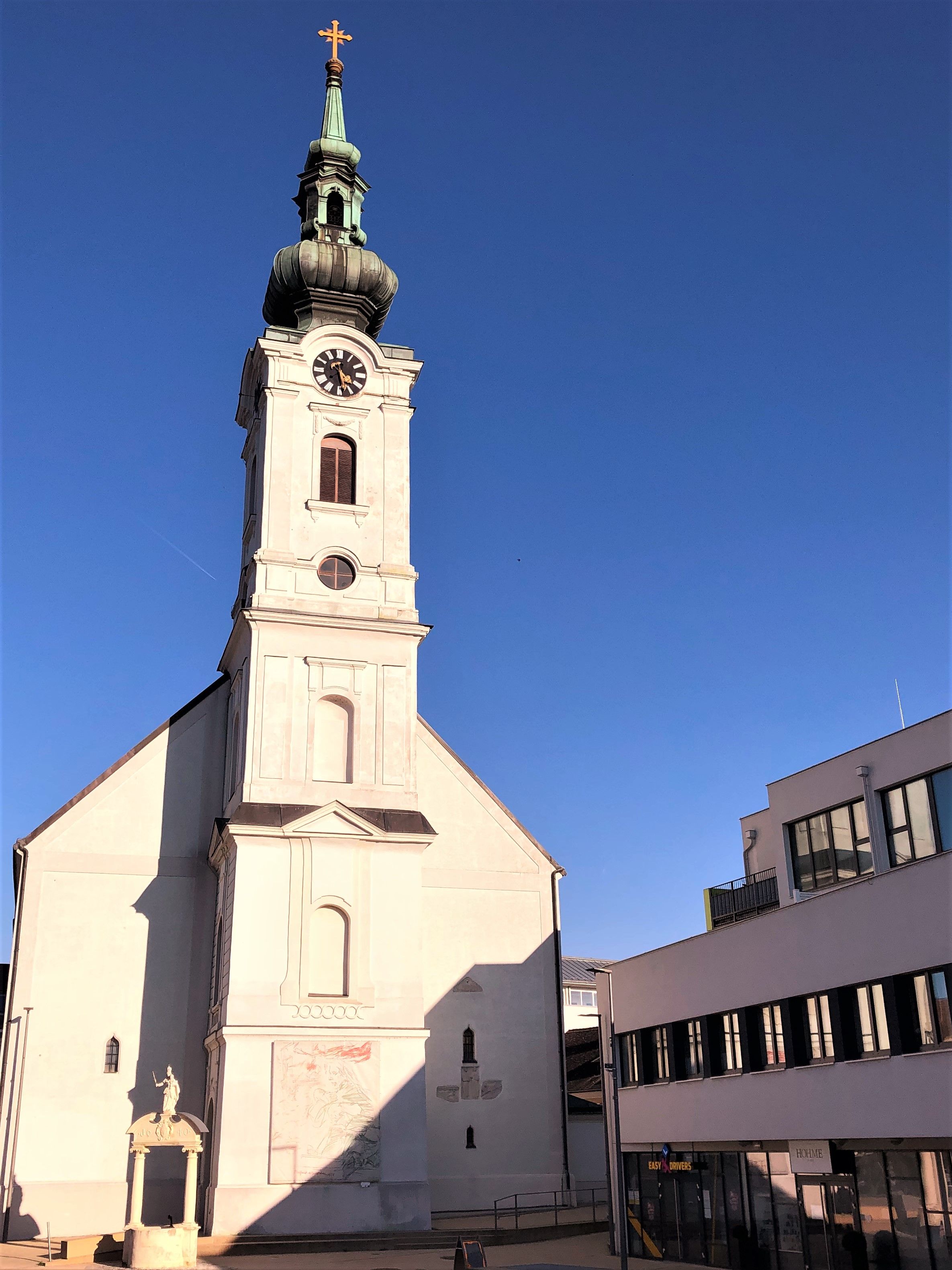 Výstavba dnešného farského kostola - Maria Himmelfahrt - sa začala v rokoch 1389 až 1404. Ako stavebný materiál sa použili kamene zo zbúrania starého mestského hradu (na mieste dnešného farského kostola). Kostol bol dokončený okolo roku 1429.