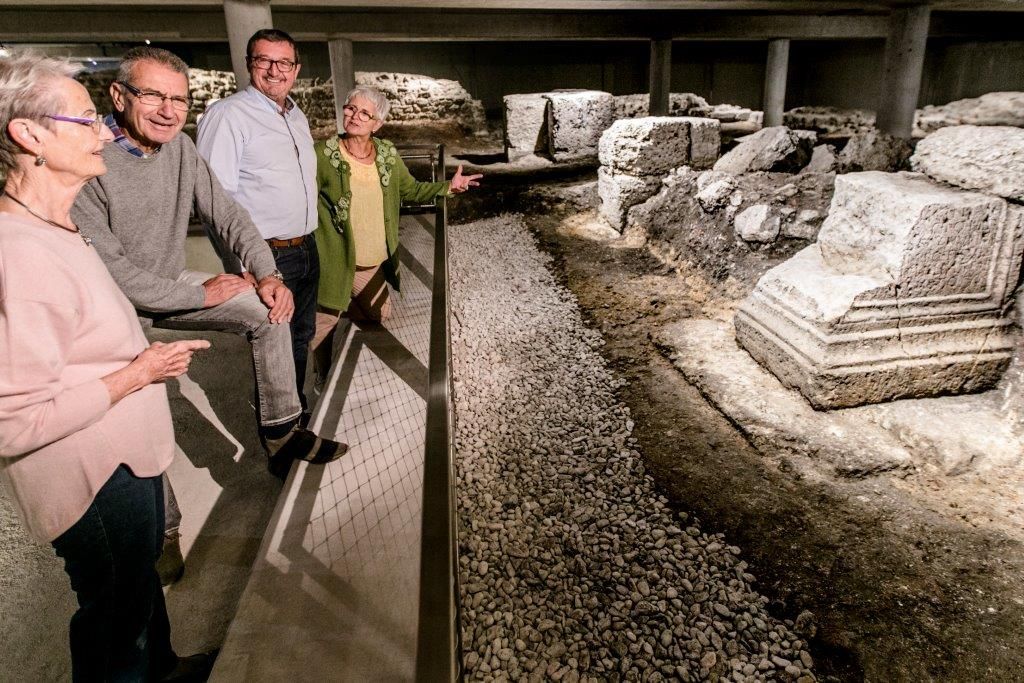 V priechodných vojenských budovách zo 4. storočia n. l. môžete obdivovať aj zreštaurovaný náhrobný kameň vysokopostaveného politika z 2. storočia n. l.