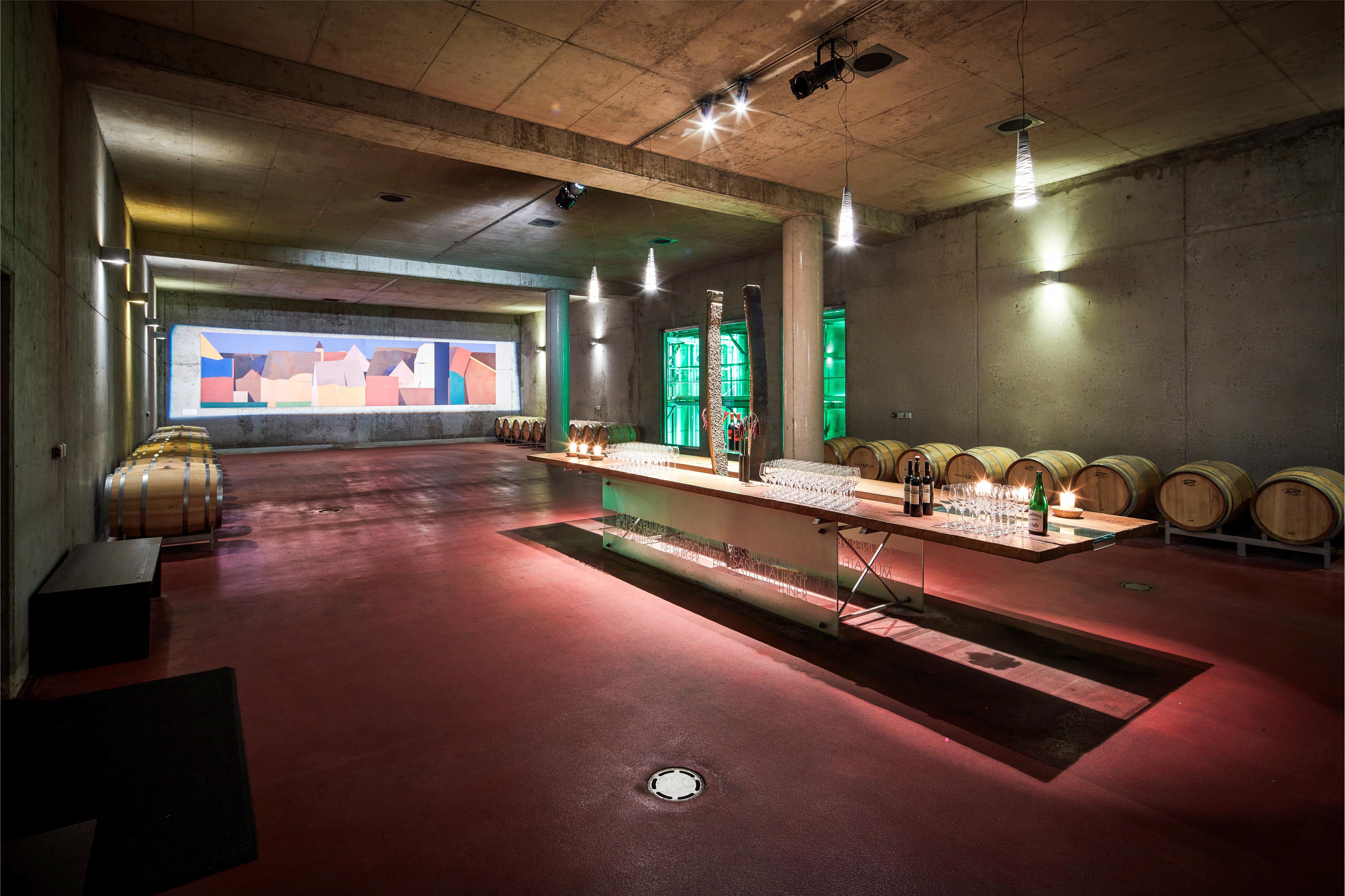 - Wein.Keller: V pivnici so sudmi už na každého hosťa čaká na vínovom oltári pohár vína Blauer Zweigelt. Tri impozantné sklenené priečelia umožňujú pohľad do pivnice na kvasenie a zrenie vo vinárskom družstve Winzer Krems.