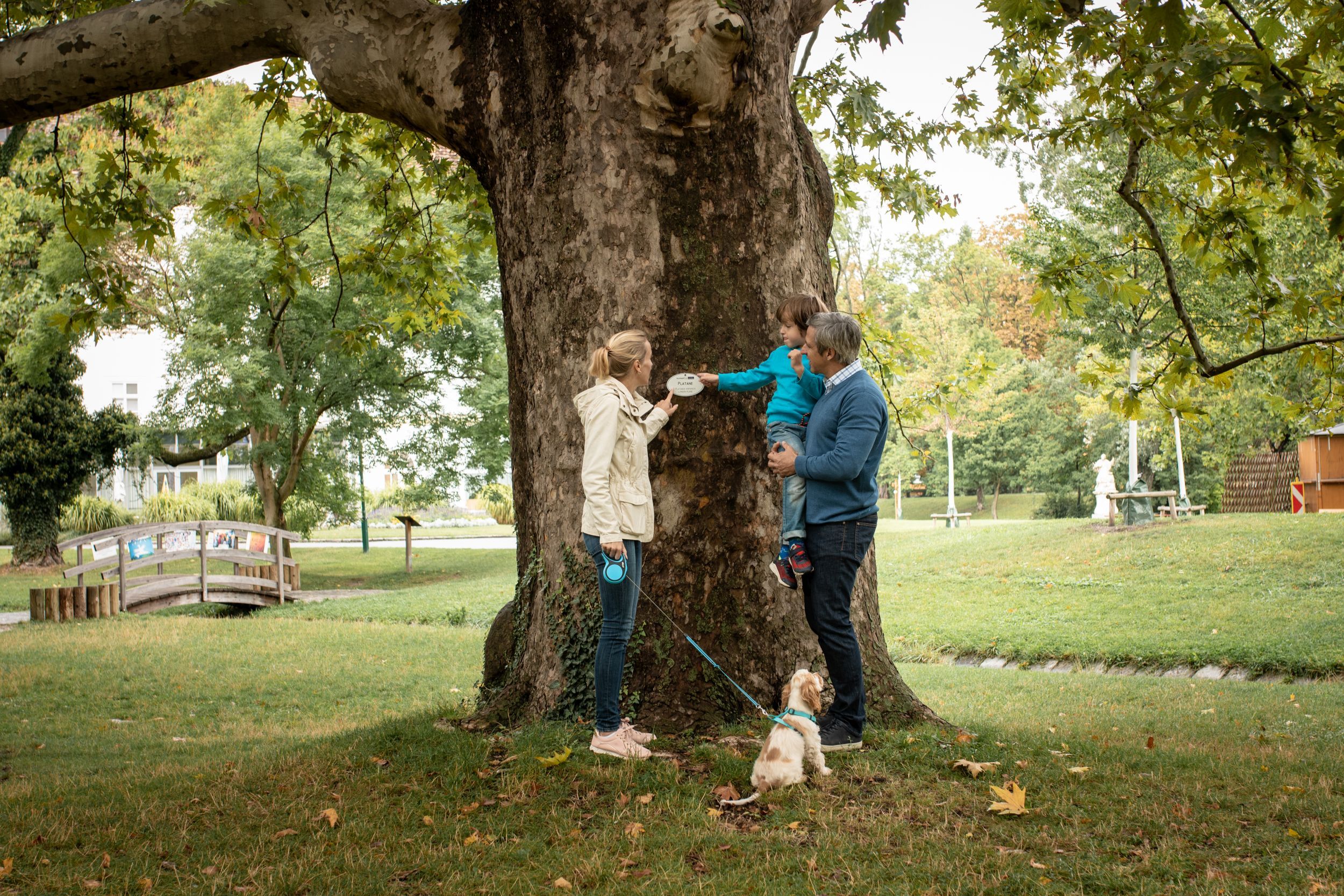V strede parku sa nachádza impozantný 200-ročný platan, ktorý poskytuje tieň už mnohým generáciám. V zámockom parku sa nachádza približne 400 stromov - vrátane viac ako 45 druhov drevín. Špeciálne stromy pozdĺž chodníkov v parku pozývajú návštevníkov na ich objavovanie a sú označené v nemčine a angličtine. Okrem stromov sú to predovšetkým barokové a súčasné sochy, ktoré dávajú zámockému parku jeho čaro.