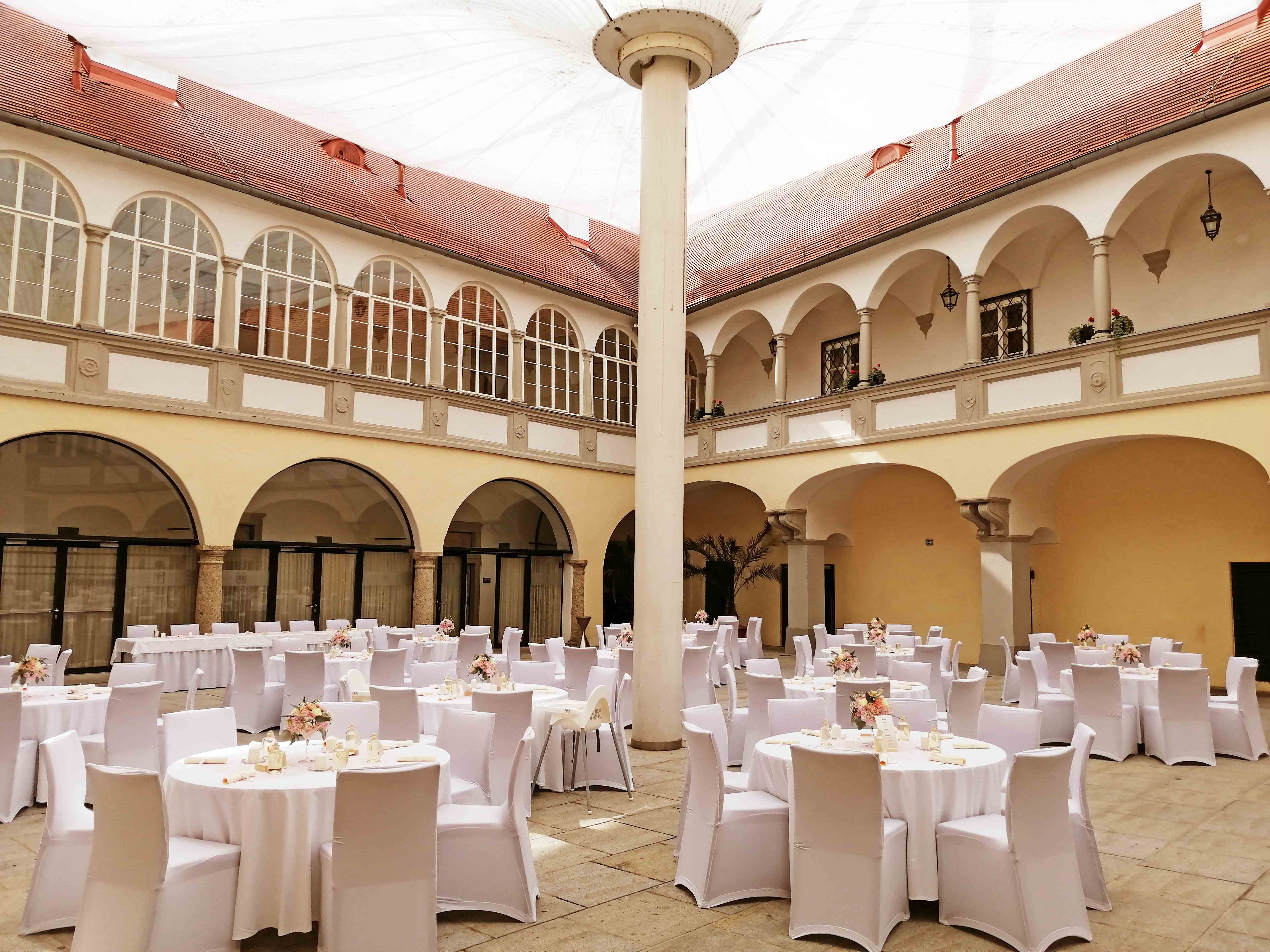 Rôzne veľké miestnosti s kapacitou od desiatich do 200 osôb ponúkajú ideálne prostredie na svadby, podujatia a oslavy, a to pri obchodných aj súkromných príležitostiach. Kryté nádvorie s rozlohou 484 m² je ideálne na veľké podujatia. Chránené pred nepriaznivým počasím, ale stále pod holým nebom, je každé podujatie príjemné.