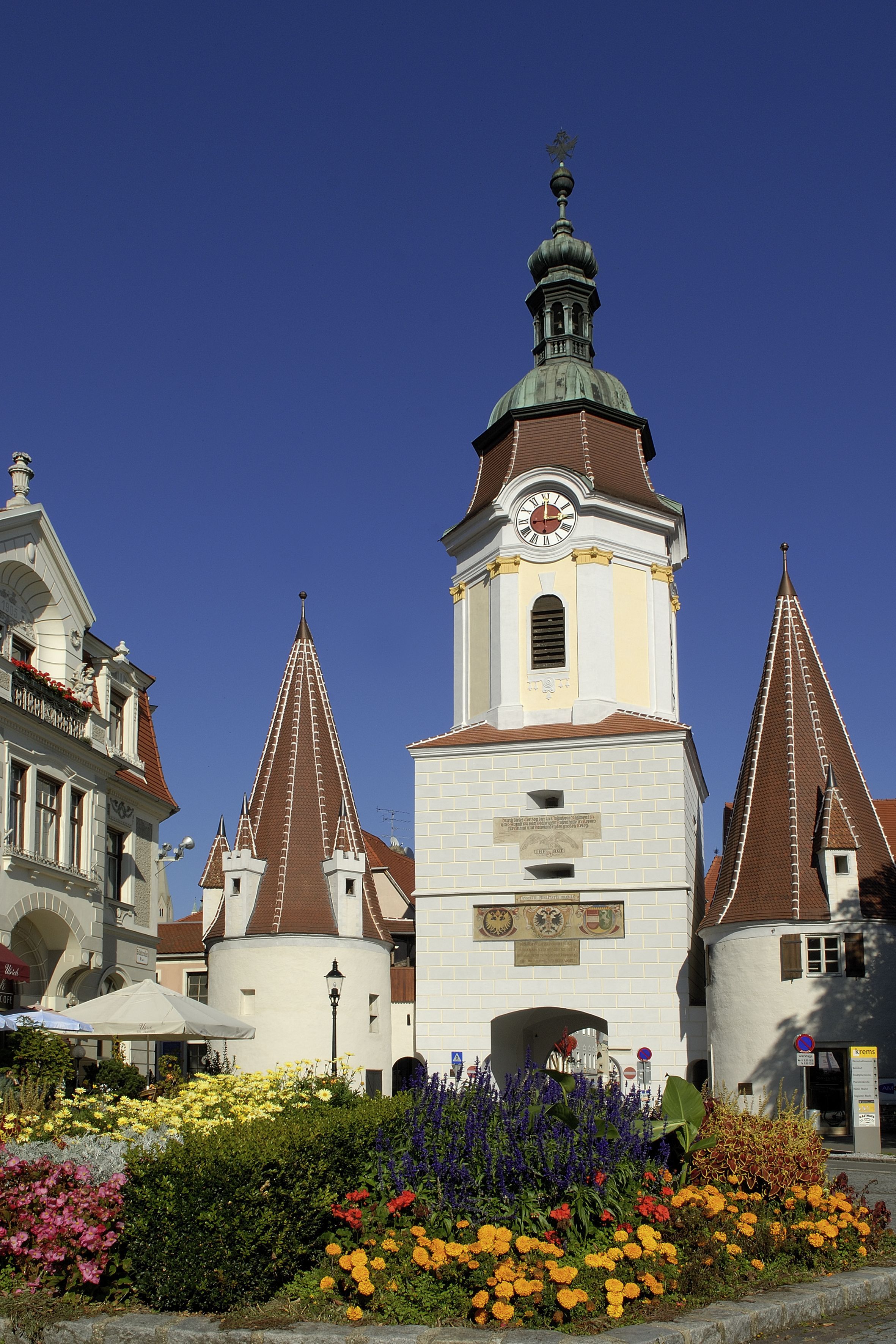 Steiner Tor je dominantou mesta Krems a jedinou zachovanou zo štyroch bývalých mestských brán. Hlavná veža z konca 15. storočia nesie na vonkajšej strane rad nápisov vrátane hesla AEIOU (Celá zem patrí Rakúsku) na pamiatku Fridricha III. Vstup do mesta zdobia tri erby z roku 1756, vľavo erb udelený cisárom Fridrichom III. a dodnes platný, na ktorom je zobrazený korunovaný dvojhlavý orol na čiernom pozadí, vpravo erb Ladislava Posthuma, v strede erb Márie Terézie.