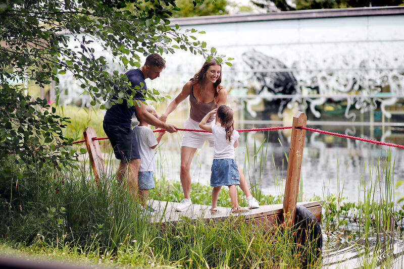 V prírodnom zážitkovom centre UnterWasserReich – pri vstupe do prírodnej rezervácie – sa malým aj veľkým objavovateľom prírody naskytne neobyčajný pohľad do tajuplného sveta vody! Vnútorný a vonkajší areál umožňuje rodičom a deťom nahliadnuť do prostredia vlhkých biotopov a spoznať rozmanitosť druhov tamojšieho sveta pod vodnou hladinou. Výnimočné atrakcie výletného cieľa: Vydry riečne, ktoré môžete pozorovať pri ukážke kŕmenia.