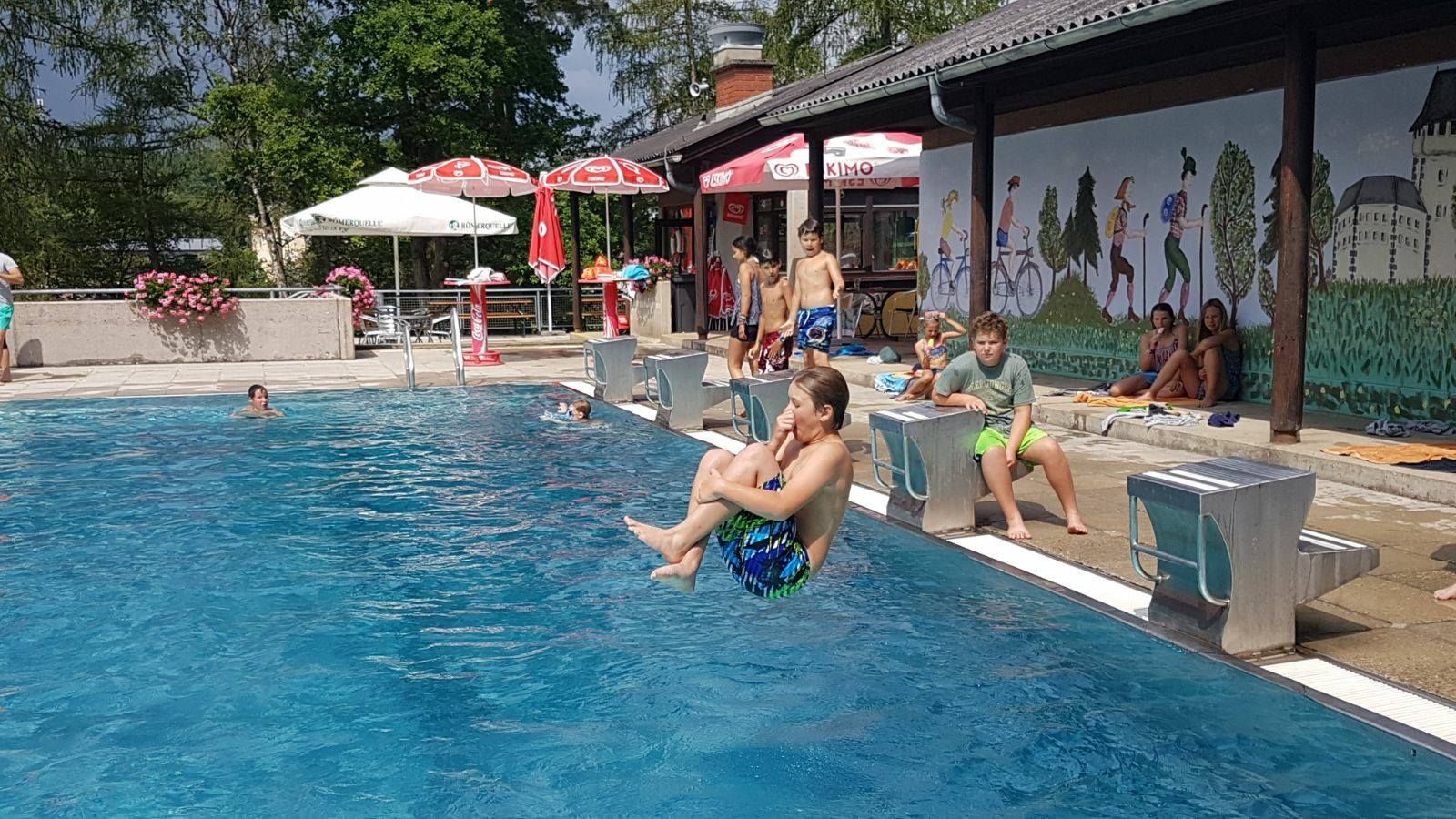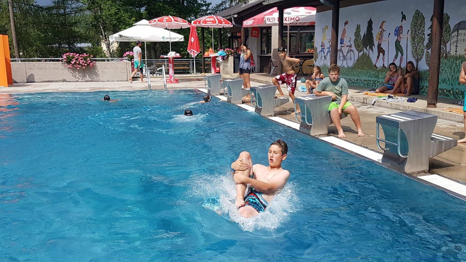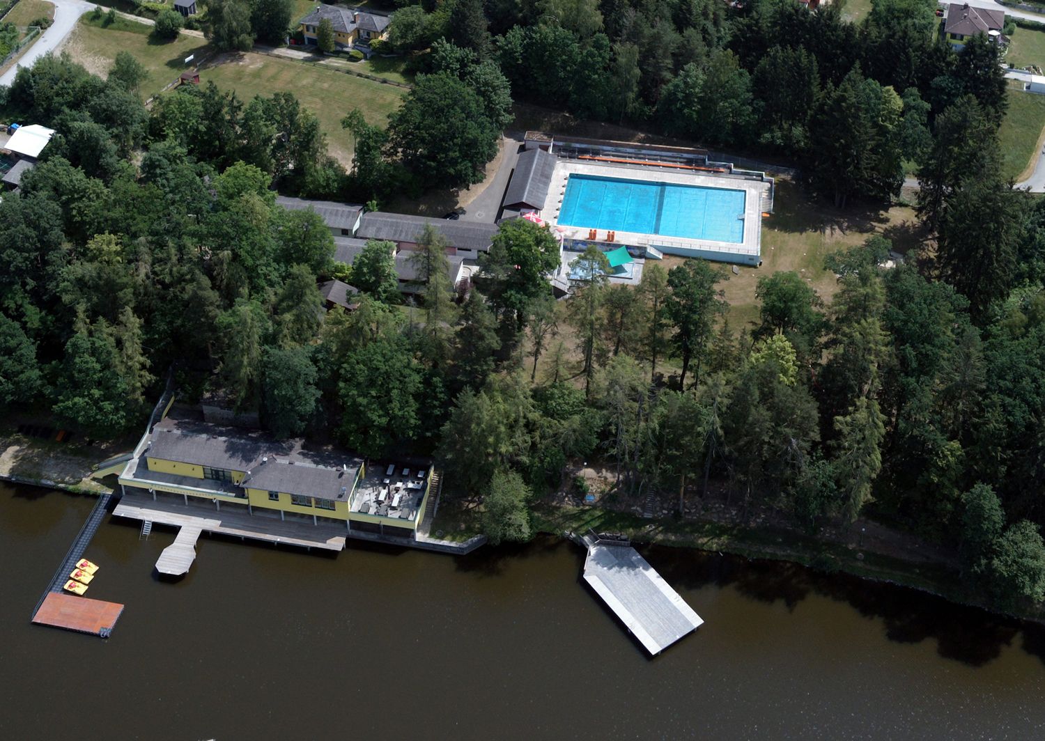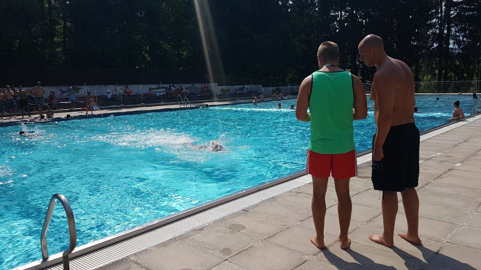 Vyhrievaný športový bazén, detský bazén, veľký priestor na opaľovanie, bufet, detské ihrisko, šatne, WC, tobogán, vodné ihrisko