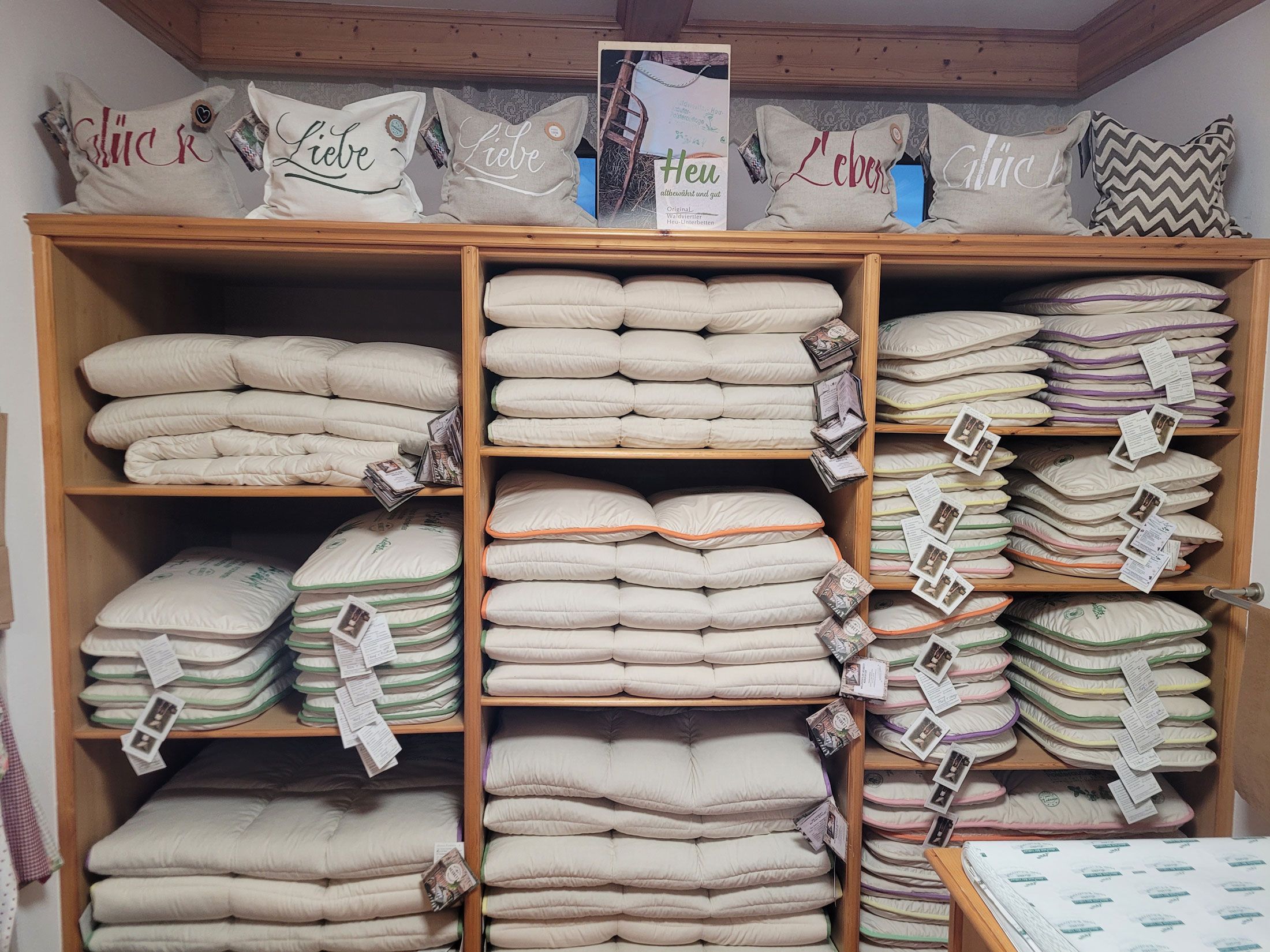 Výrobky sú priedušné a regulujú teplotu a vyrábajú sa priamo na farme. Spoločnosť je plne oddaná sile prírody! Zdravé seno a rôzne bylinky sa prešívajú do komôr senných prikrývok (matracov), vankúšov alebo perín. Vďaka tomuto vysokokvalitnému prírodnému produktu rodinný podnik vyvinul jedinečnú inováciu v oblasti spánku.